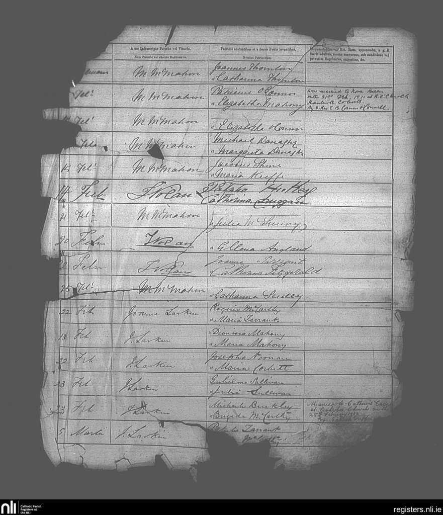 Boherbue; County of Cork; Diocese of Kerry. Baptisms, Feb. 1873 to Mar. 1873