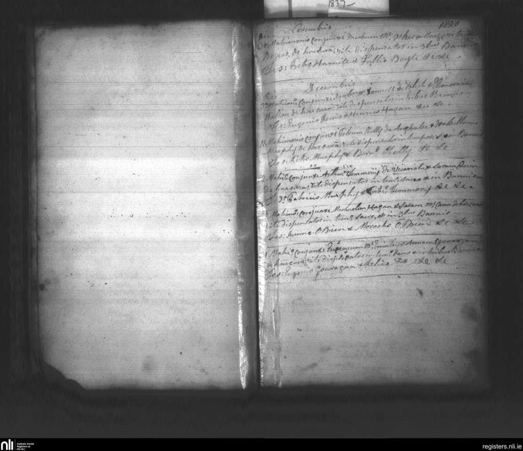 Tullyallen; County of Tyrone; Archdiocese of Armagh. Marriages, Nov. 1820 to Dec. 1820