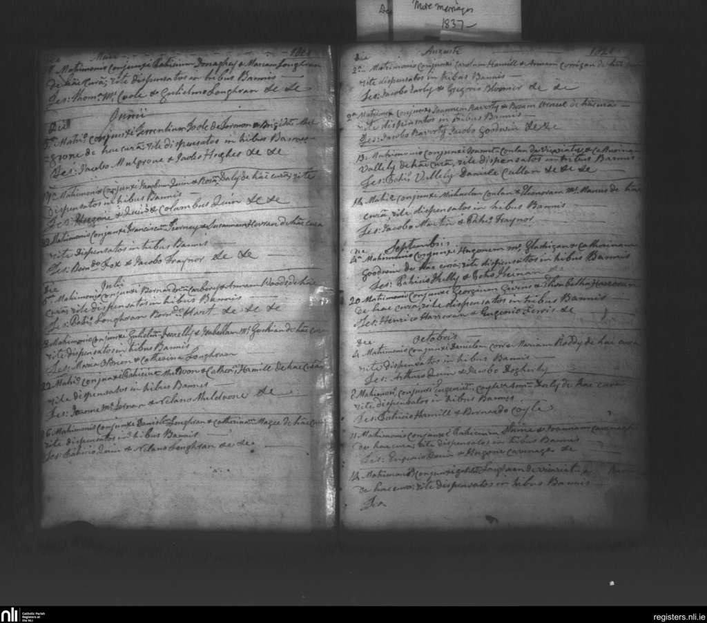 Tullyallen; County of Tyrone; Archdiocese of Armagh. Marriages, May 1821 to Oct. 1821