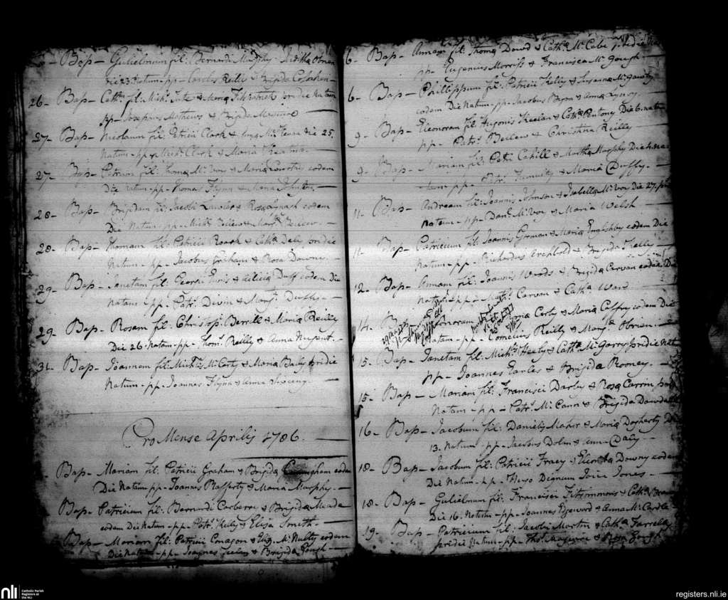 St. Peter's, Drogheda; County of Louth; Archdiocese of Armagh. Baptisms, Mar. 1786 to Apr. 1786