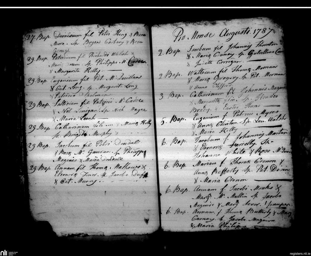St. Peter's, Drogheda; County of Louth; Archdiocese of Armagh. Baptisms, July 1787 to Aug. 1787