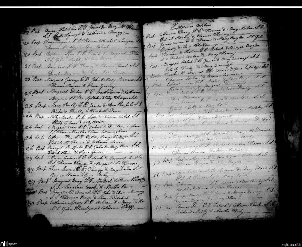 St. Peter's, Drogheda; County of Louth; Archdiocese of Armagh. Baptisms, Sep. 1787 to Oct. 1787