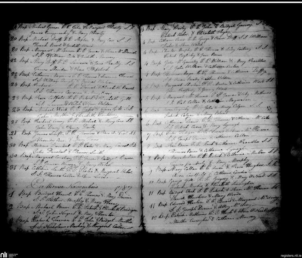 St. Peter's, Drogheda; County of Louth; Archdiocese of Armagh. Baptisms, Oct. 1787 to Nov. 1787
