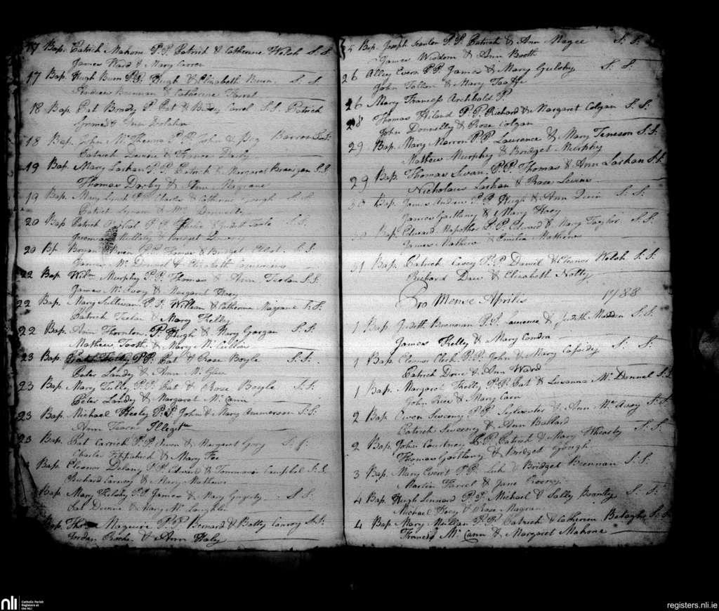 St. Peter's, Drogheda; County of Louth; Archdiocese of Armagh. Baptisms, Mar. 1788 to Apr. 1788
