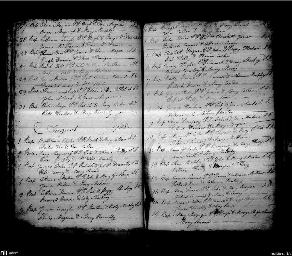 St. Peter's, Drogheda; County of Louth; Archdiocese of Armagh. Baptisms, July 1788 to Aug. 1788
