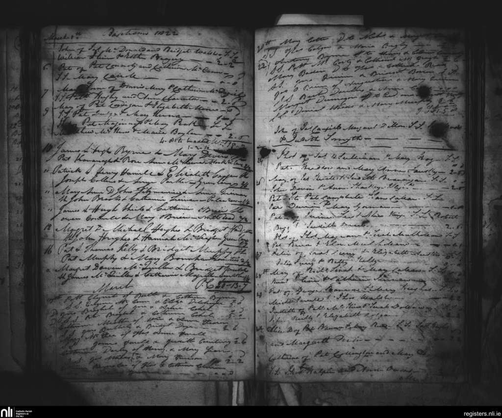 St. Peter's, Drogheda; County of Louth; Archdiocese of Armagh. Baptisms, Mar. 1822