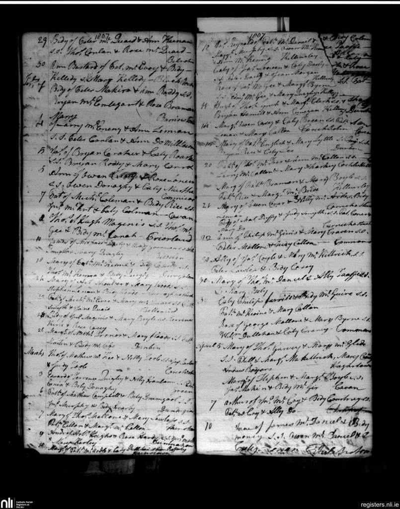 Haggardstown; County of Louth; Archdiocese of Armagh. Baptisms, Jan. 1807 to Apr. 1807