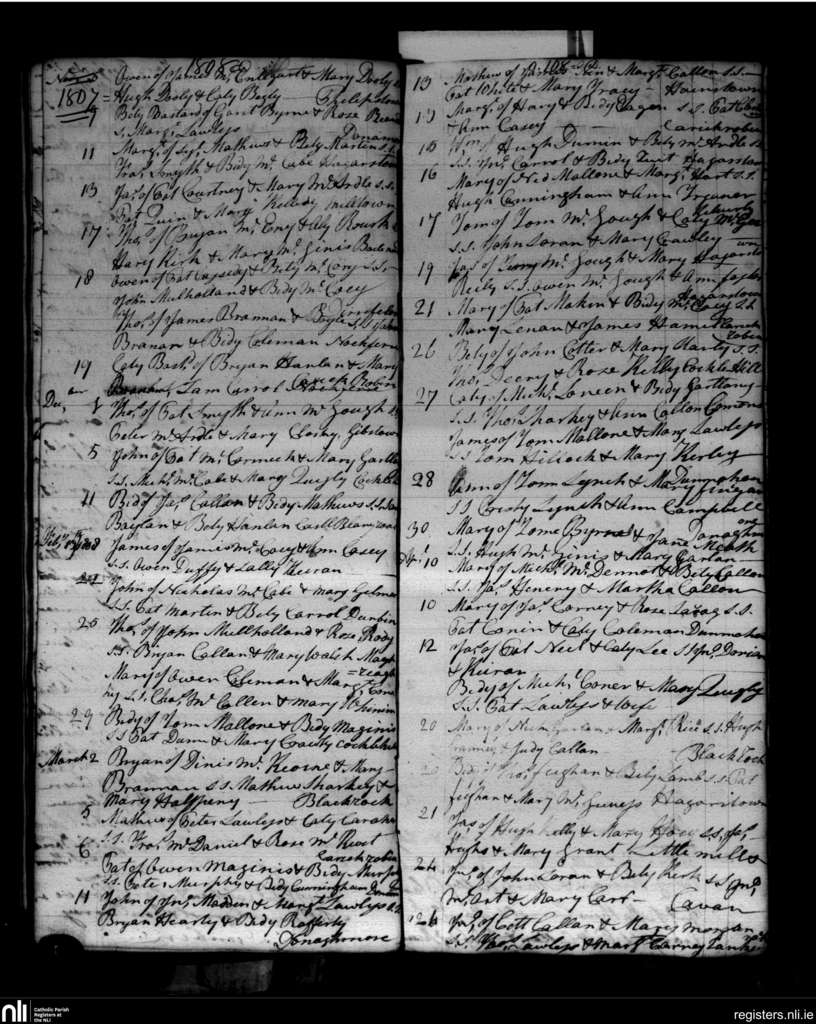 Haggardstown; County of Louth; Archdiocese of Armagh. Baptisms, Nov. 1807 to Apr. 1808