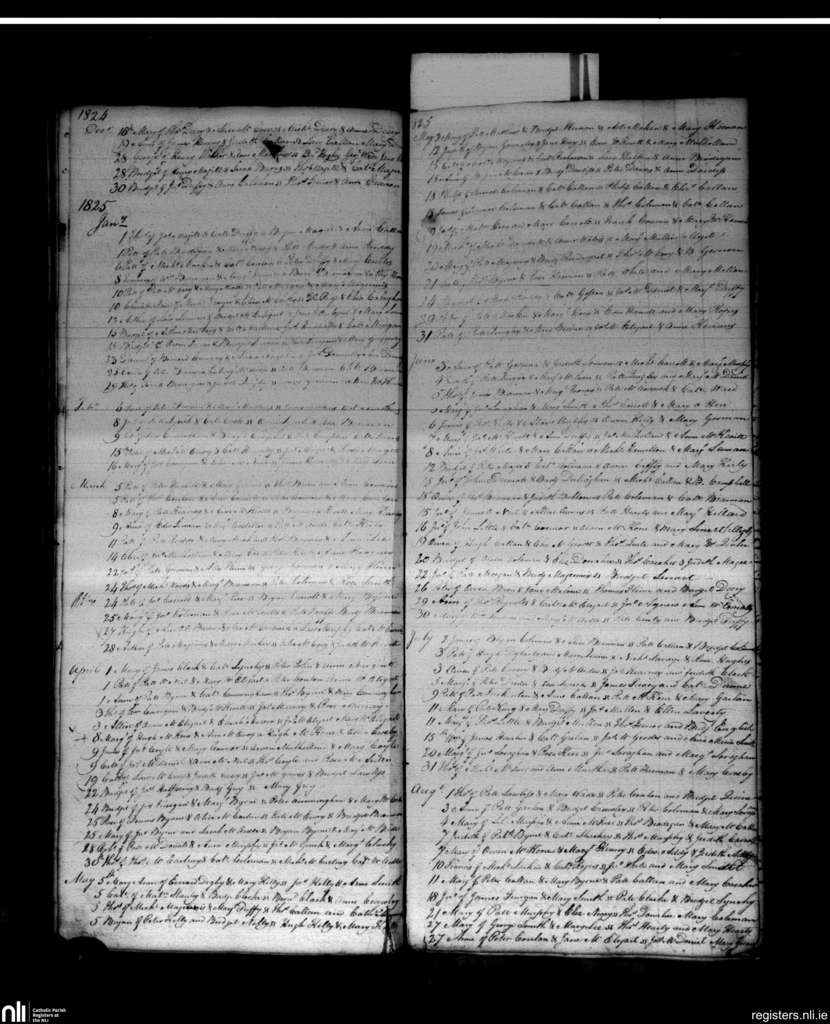 Haggardstown; County of Louth; Archdiocese of Armagh. Baptisms, Dec. 1824 to Aug. 1825