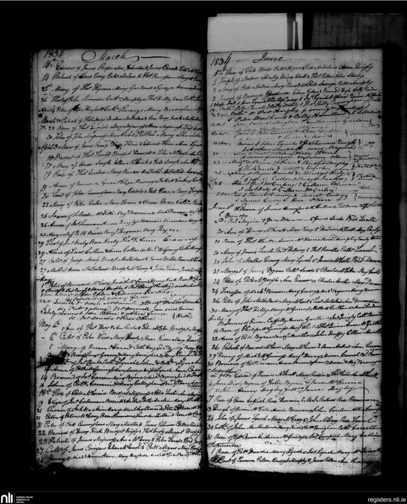 Haggardstown; County of Louth; Archdiocese of Armagh. Baptisms, Mar. 1834 to Sep. 1834