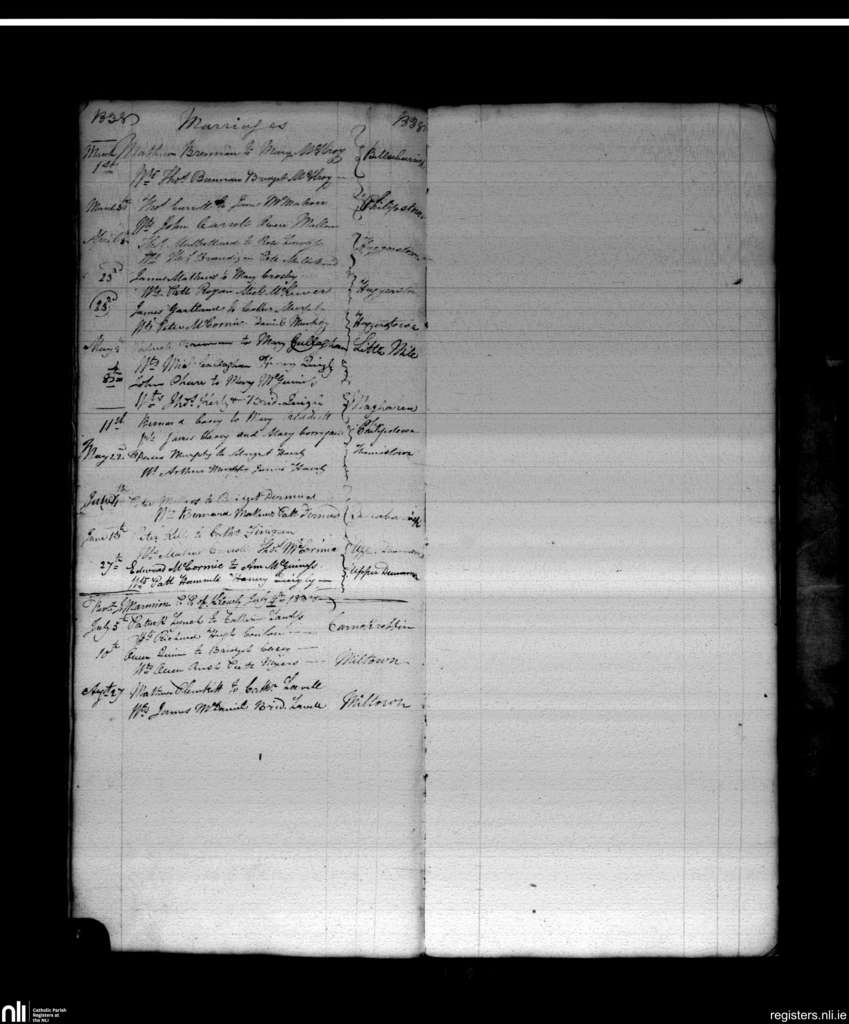Haggardstown; County of Louth; Archdiocese of Armagh. Marriages, Mar. 1838 to Aug. 1838