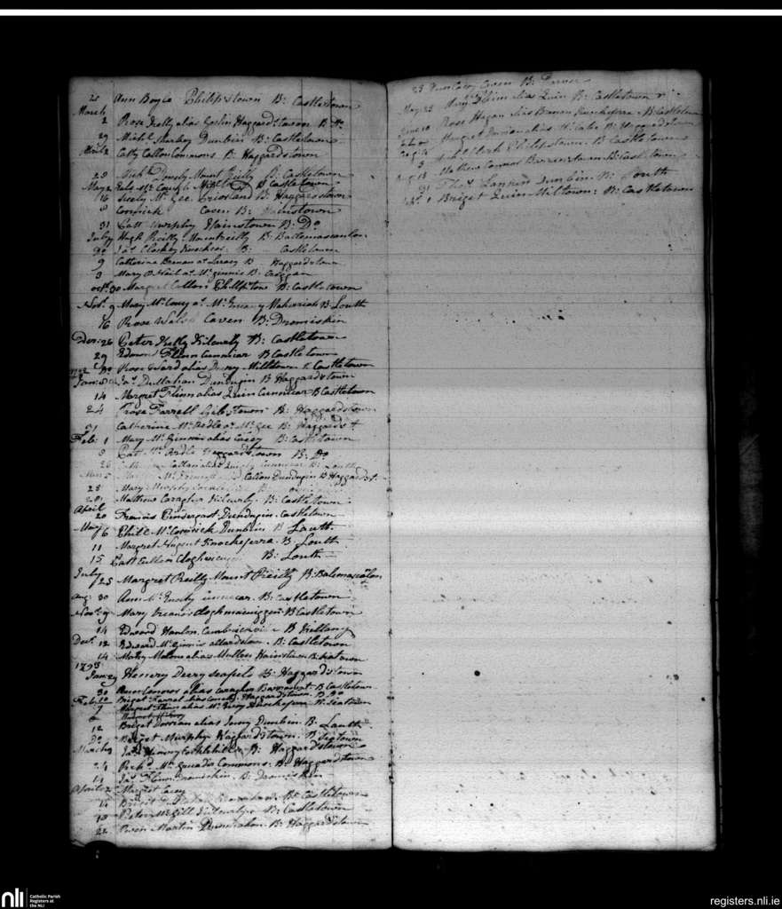 Haggardstown; County of Louth; Archdiocese of Armagh. Deaths, Mar. 1791 to Sep. 1793