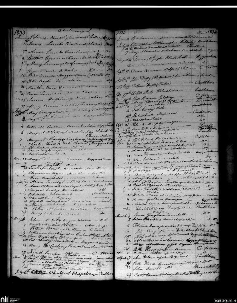 Haggardstown; County of Louth; Archdiocese of Armagh. Deaths, Jan. 1833 to Apr. 1834