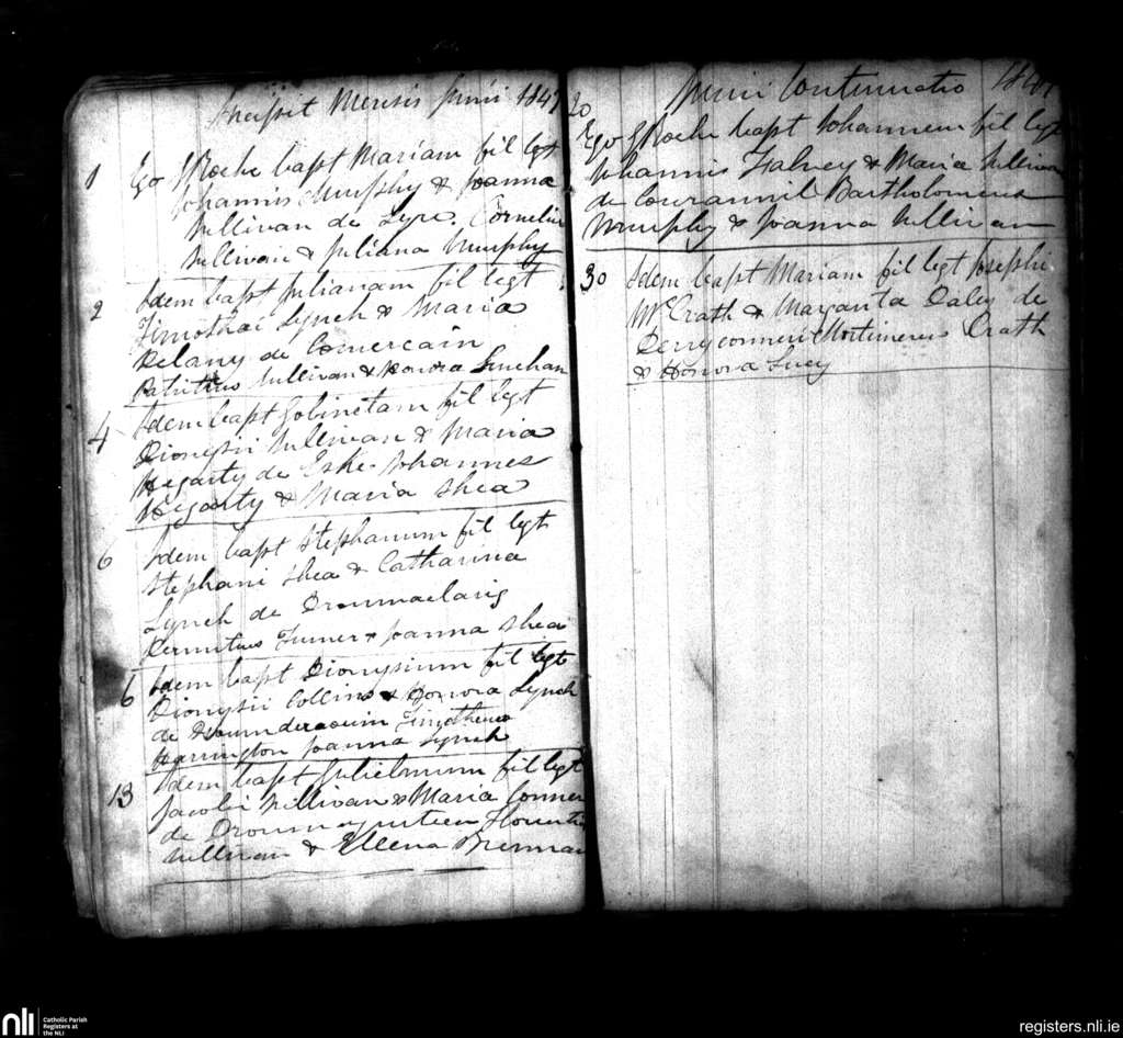 Bonane and Glengarriff; County of Cork, Kerry; Diocese of Kerry. Baptisms, June 1847