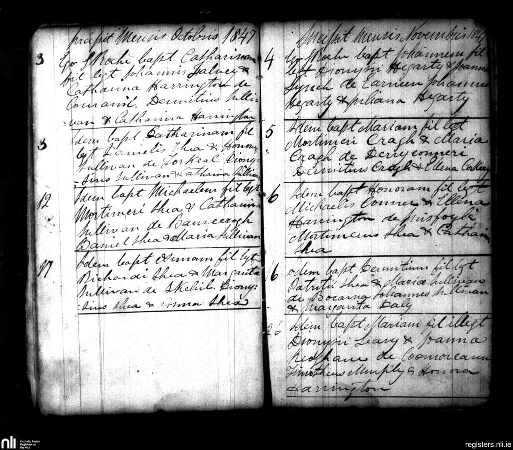 Bonane and Glengarriff; County of Cork, Kerry; Diocese of Kerry. Baptisms, Oct. 1847 to Nov. 1847