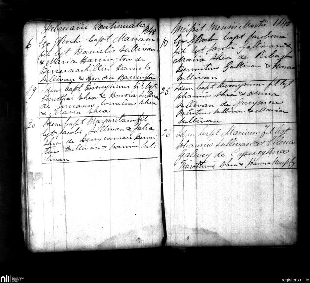 Bonane and Glengarriff; County of Cork, Kerry; Diocese of Kerry. Baptisms, Feb. 1848 to Mar. 1848