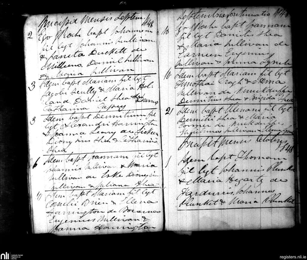 Bonane and Glengarriff; County of Cork, Kerry; Diocese of Kerry. Baptisms, Sep. 1848 to Oct. 1848