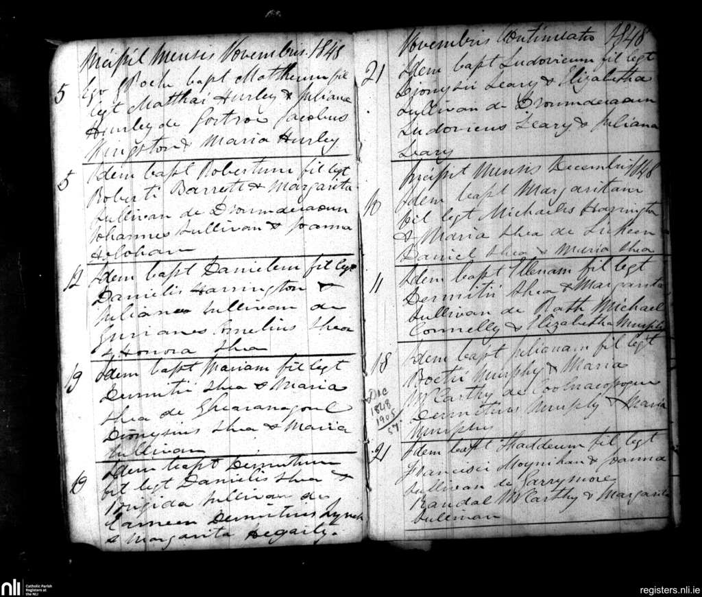 Bonane and Glengarriff; County of Cork, Kerry; Diocese of Kerry. Baptisms, Nov. 1848 to Dec. 1848