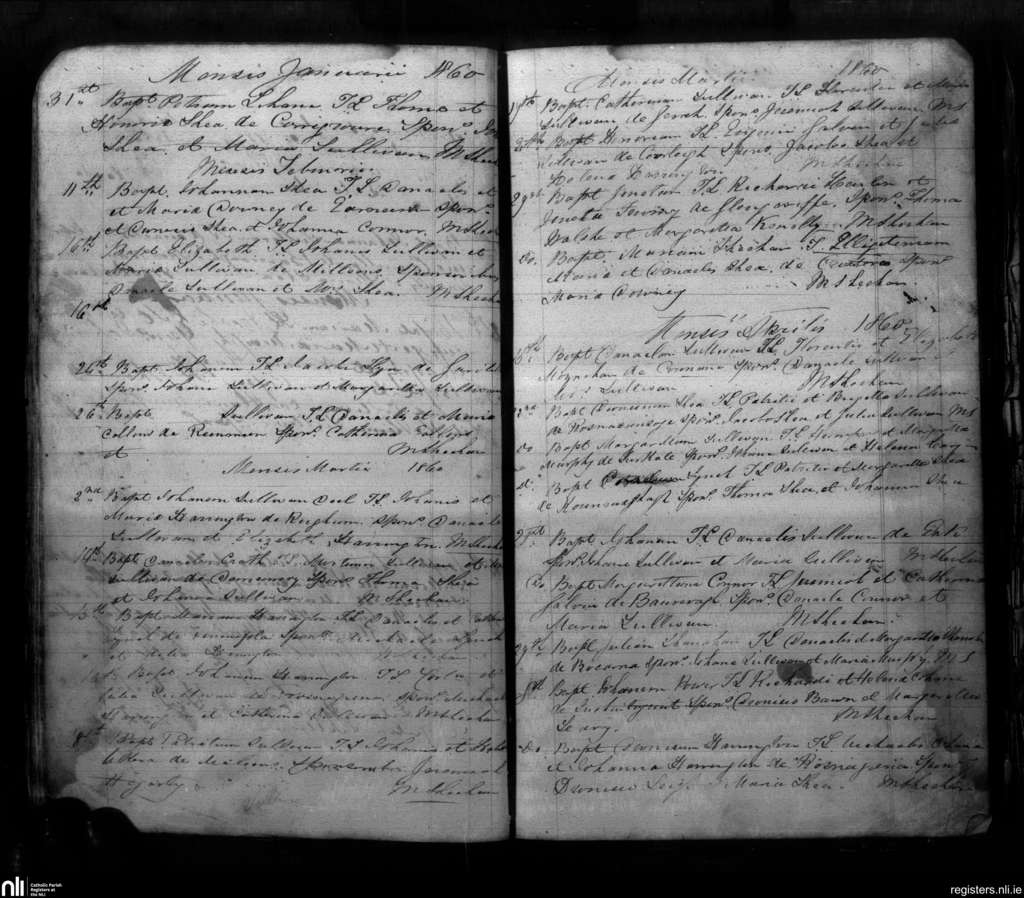 Bonane and Glengarriff; County of Cork, Kerry; Diocese of Kerry. Baptisms, Jan. 1860 to Apr. 1860