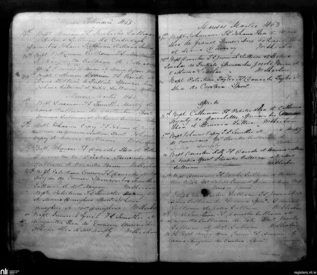 Bonane and Glengarriff; County of Cork, Kerry; Diocese of Kerry. Baptisms, Feb. 1863 to Apr. 1863