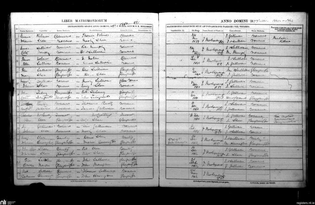 Bonane and Glengarriff; County of Cork, Kerry; Diocese of Kerry. Marriages, Jan. 1879 to May 1882