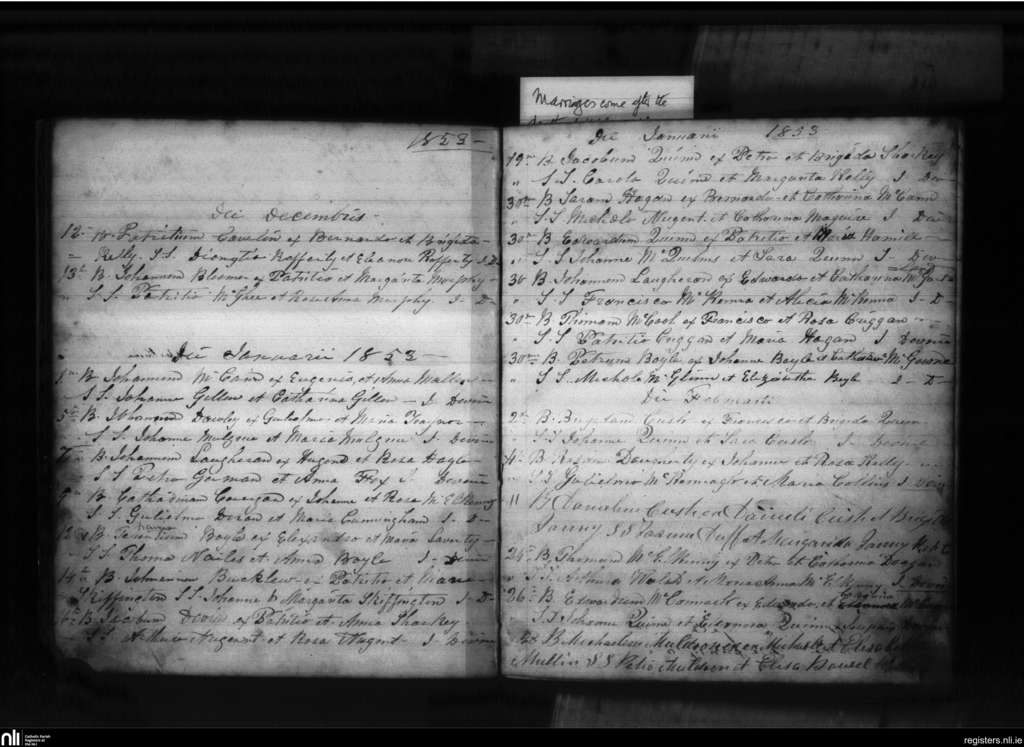 Killeeshil; County of Tyrone; Archdiocese of Armagh. Baptisms, Dec. 1852 to Feb. 1853