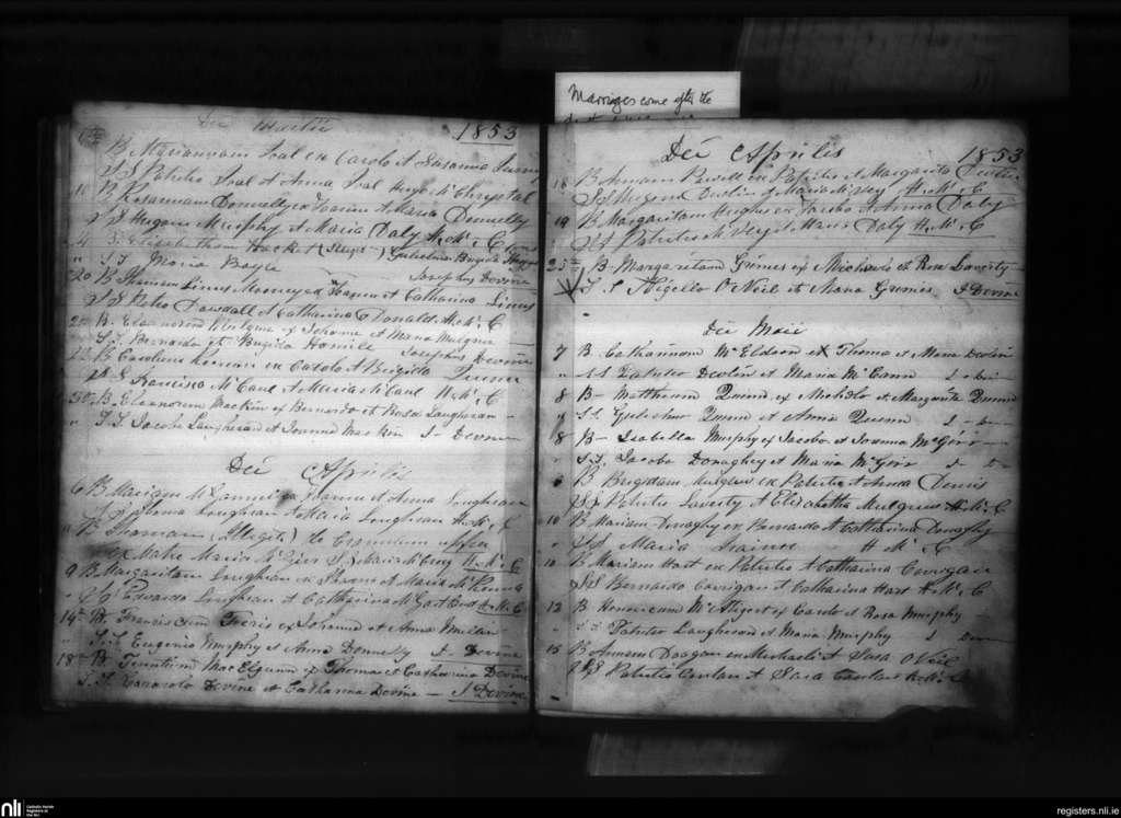 Killeeshil; County of Tyrone; Archdiocese of Armagh. Baptisms, Mar. 1853 to May 1853