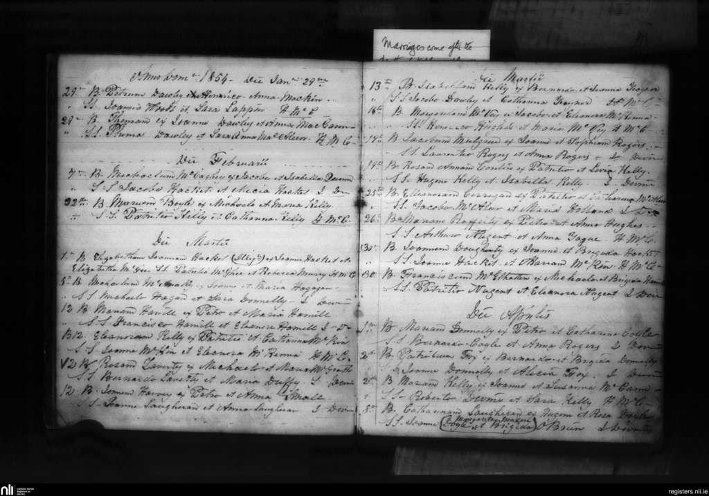 Killeeshil; County of Tyrone; Archdiocese of Armagh. Baptisms, Jan. 1854 to Apr. 1854