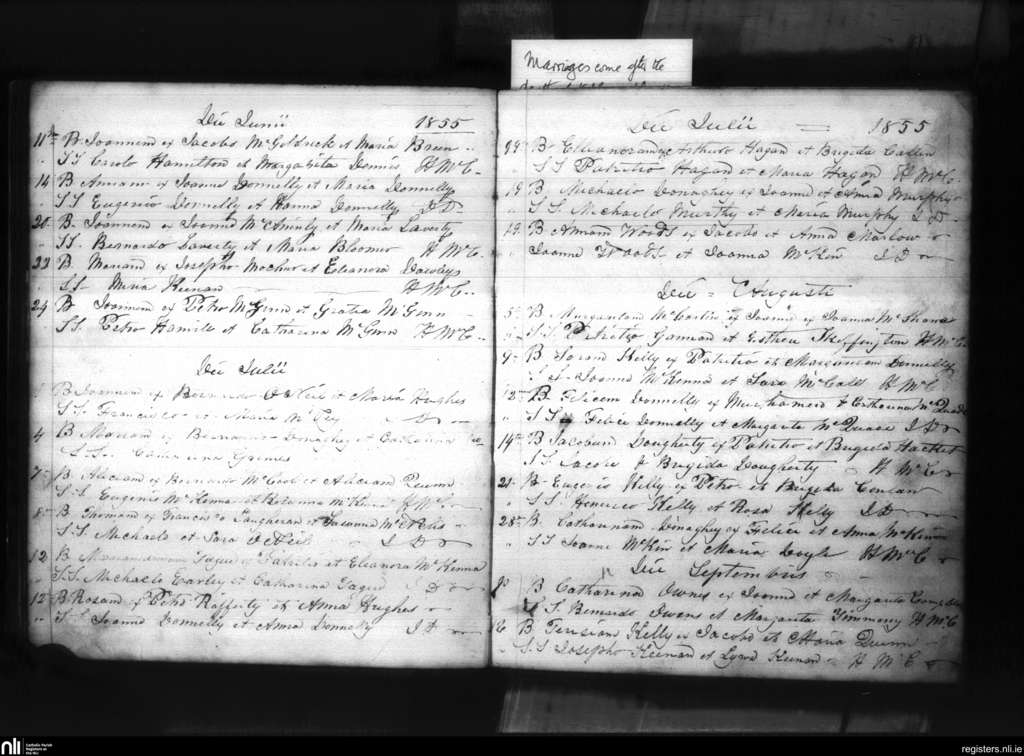 Killeeshil; County of Tyrone; Archdiocese of Armagh. Baptisms, June 1855 to Sep. 1855