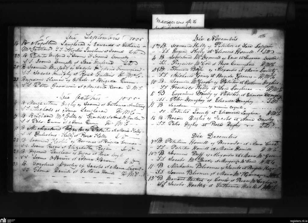 Killeeshil; County of Tyrone; Archdiocese of Armagh. Baptisms, Sep. 1855 to Dec. 1855