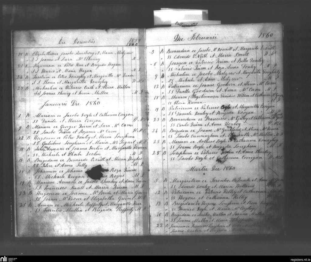 Killeeshil; County of Tyrone; Archdiocese of Armagh. Baptisms, Dec. 1859 to Mar. 1860