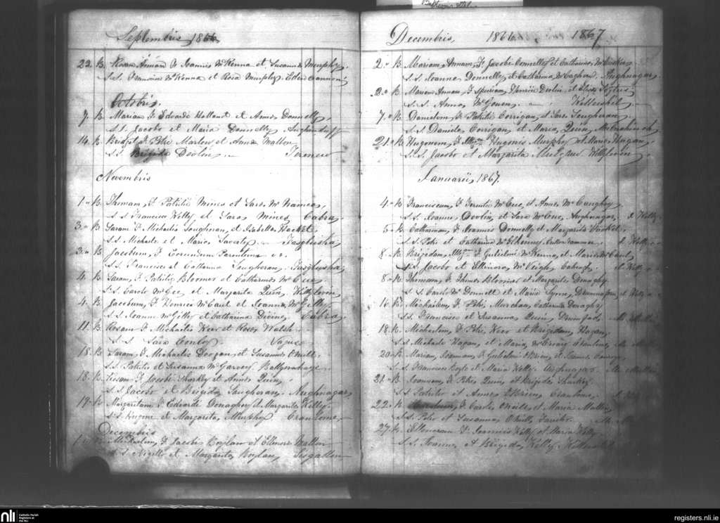 Killeeshil; County of Tyrone; Archdiocese of Armagh. Baptisms, Sep. 1866 to Jan. 1867