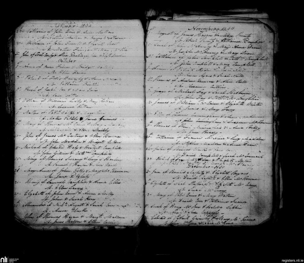 Loughgall and Tartaraghan; County of Armagh; Archdiocese of Armagh. Baptisms, Sep. 1840 to Dec. 1840