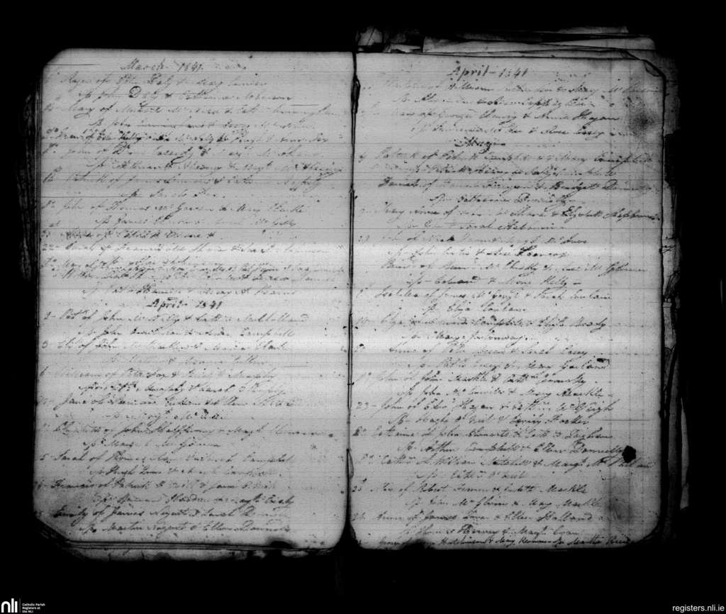 Loughgall and Tartaraghan; County of Armagh; Archdiocese of Armagh. Baptisms, Mar. 1841 to May 1841