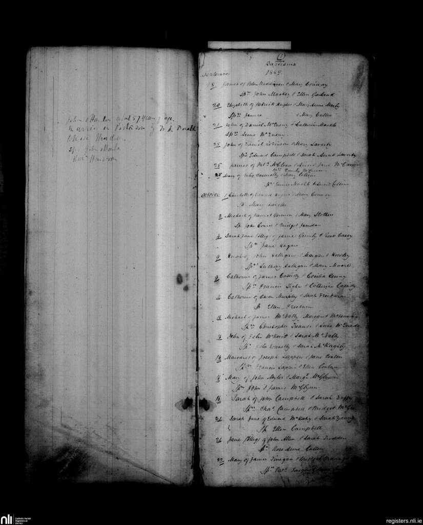 Loughgall and Tartaraghan; County of Armagh; Archdiocese of Armagh. Baptisms, Sep. 1859 to Oct. 1859