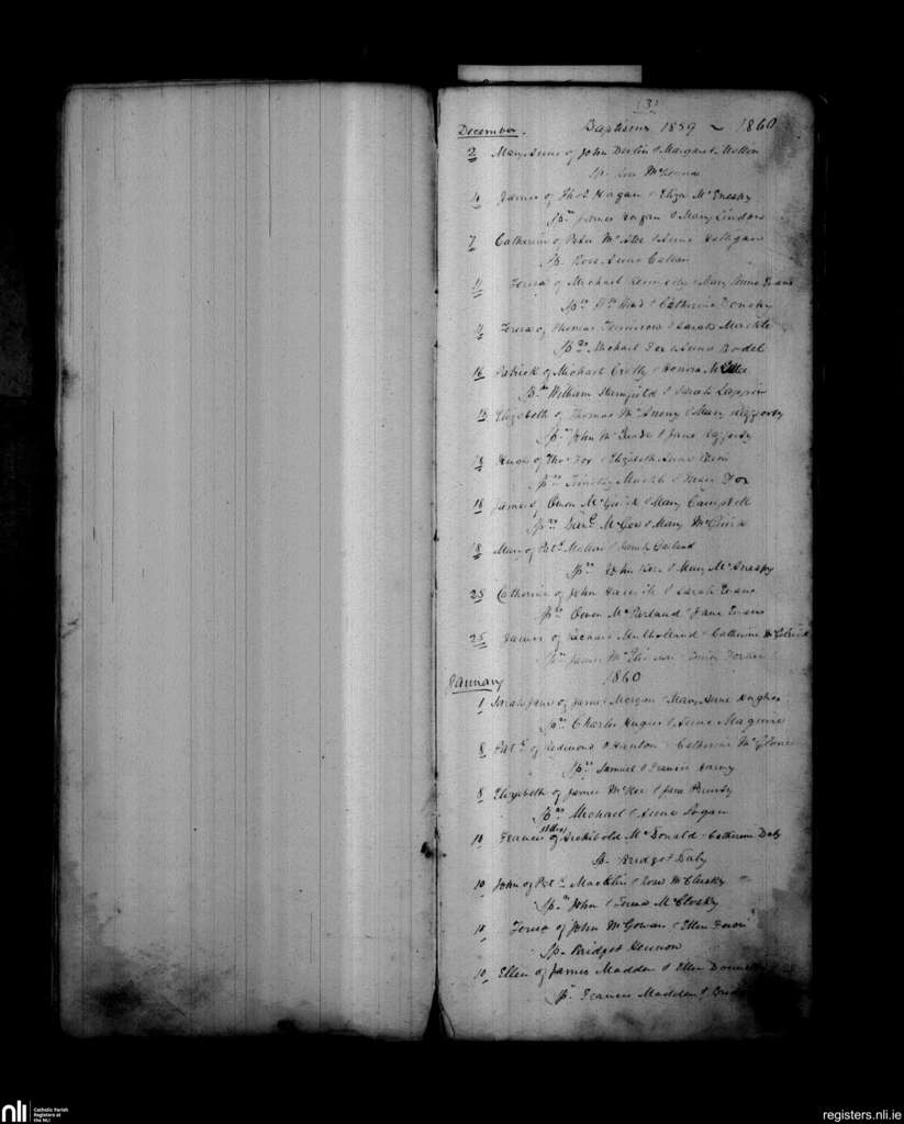 Loughgall and Tartaraghan; County of Armagh; Archdiocese of Armagh. Baptisms, Dec. 1859 to Jan. 1860