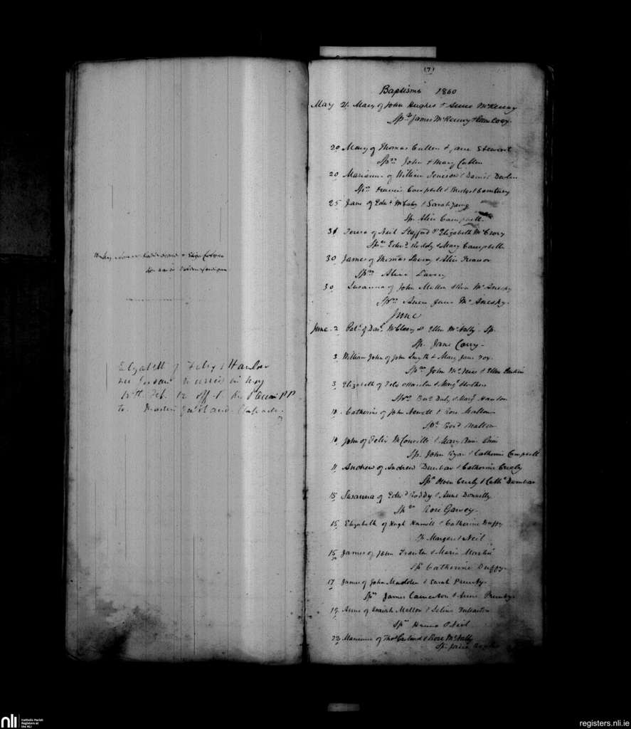 Loughgall and Tartaraghan; County of Armagh; Archdiocese of Armagh. Baptisms, May 1860 to June 1860