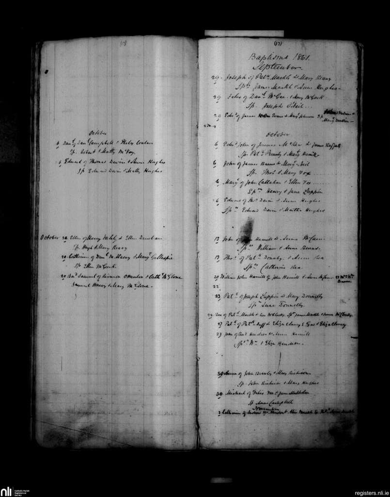 Loughgall and Tartaraghan; County of Armagh; Archdiocese of Armagh. Baptisms, Sep. 1861 to Oct. 1861