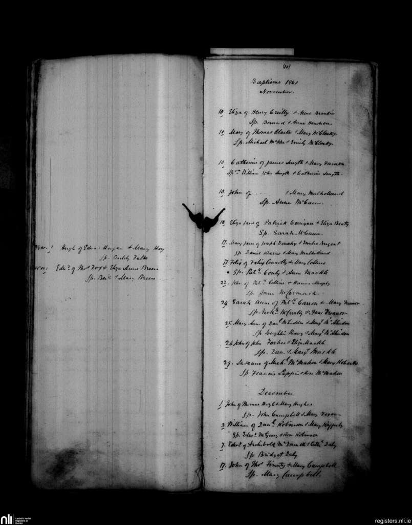 Loughgall and Tartaraghan; County of Armagh; Archdiocese of Armagh. Baptisms, Nov. 1861 to Dec. 1861