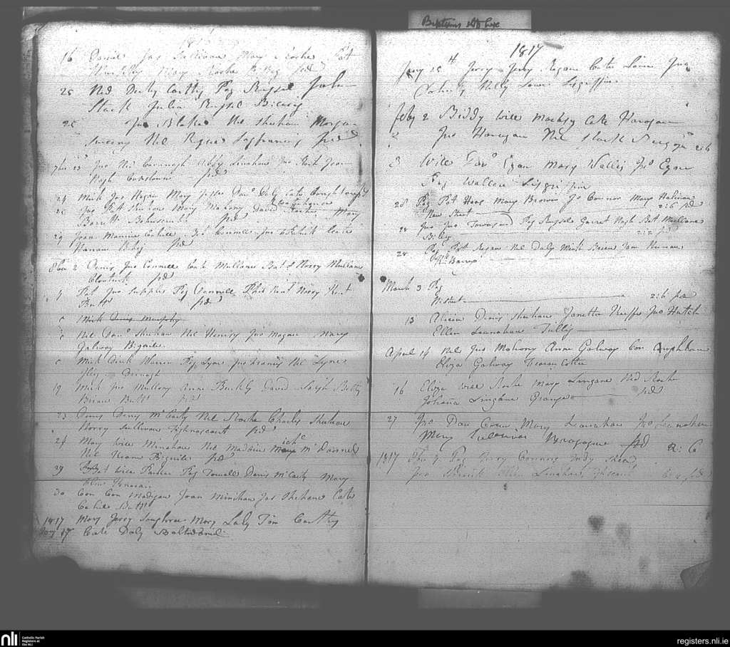 Buttevant; County of Cork; Diocese of Cloyne. Baptisms, Sep. 1816 to Apr. 1817