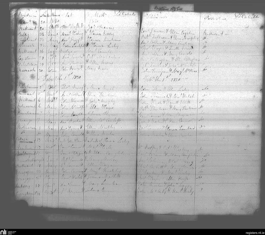 Buttevant; County of Cork; Diocese of Cloyne. Baptisms, Jan. 1820 to Feb. 1820