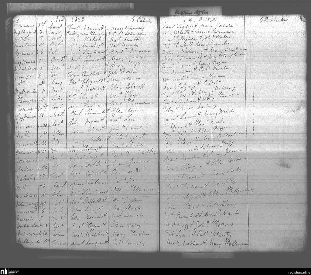 Buttevant; County of Cork; Diocese of Cloyne. Baptisms, Jan. 1822 to Feb. 1822