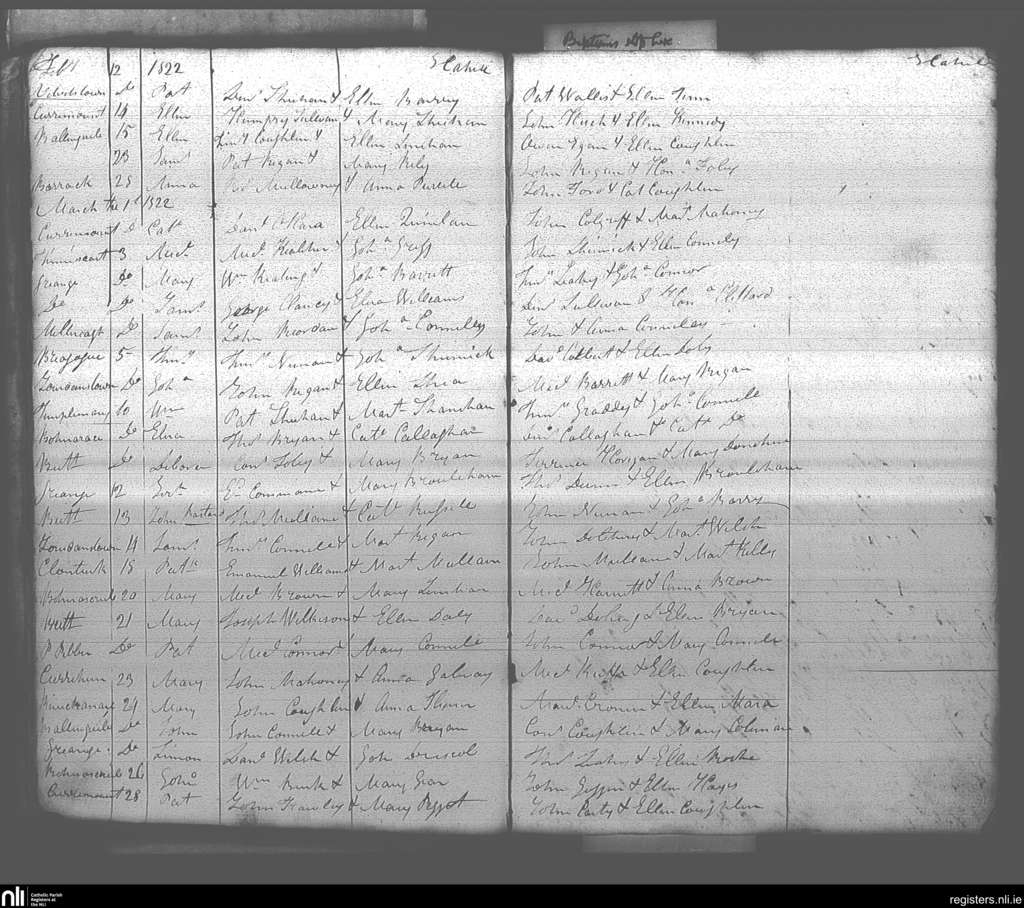 Buttevant; County of Cork; Diocese of Cloyne. Baptisms, Feb. 1822 to Mar. 1822