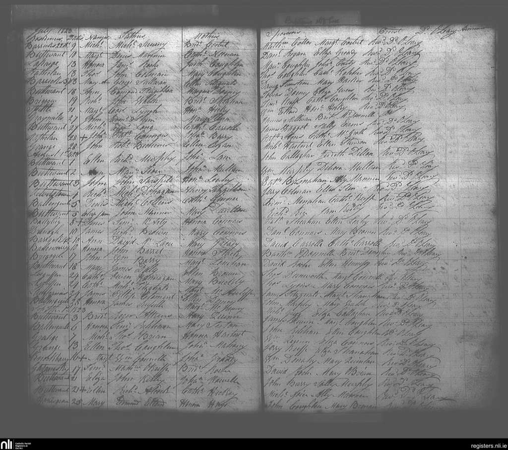 Buttevant; County of Cork; Diocese of Cloyne. Baptisms, July 1823 to Sep. 1823