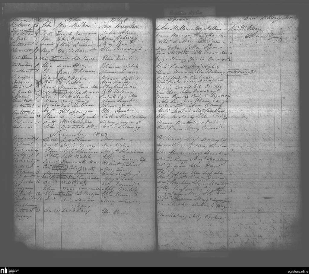 Buttevant; County of Cork; Diocese of Cloyne. Baptisms, Nov. 1823