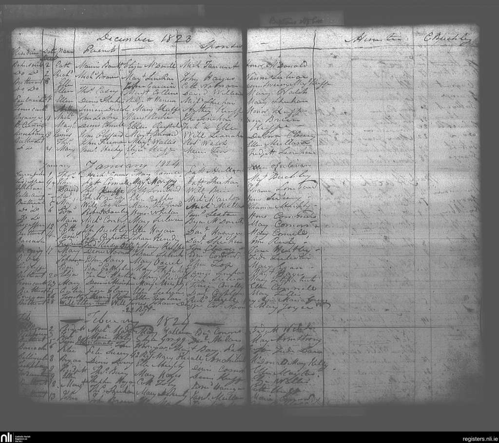 Buttevant; County of Cork; Diocese of Cloyne. Baptisms, Dec. 1823 to Feb. 1824