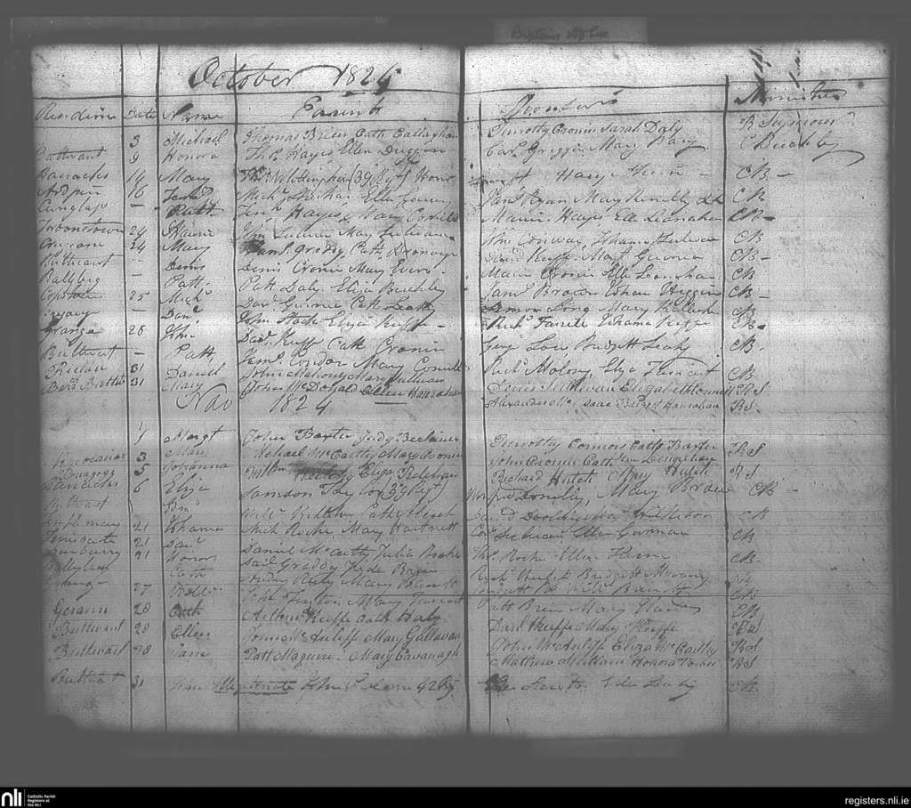Buttevant; County of Cork; Diocese of Cloyne. Baptisms, Oct. 1824 to Nov. 1824
