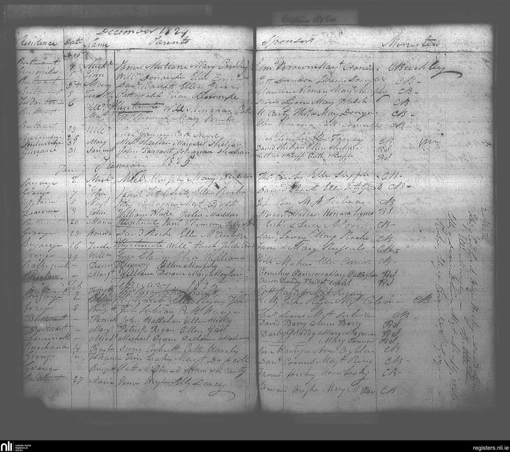 Buttevant; County of Cork; Diocese of Cloyne. Baptisms, Dec. 1824 to Feb. 1825