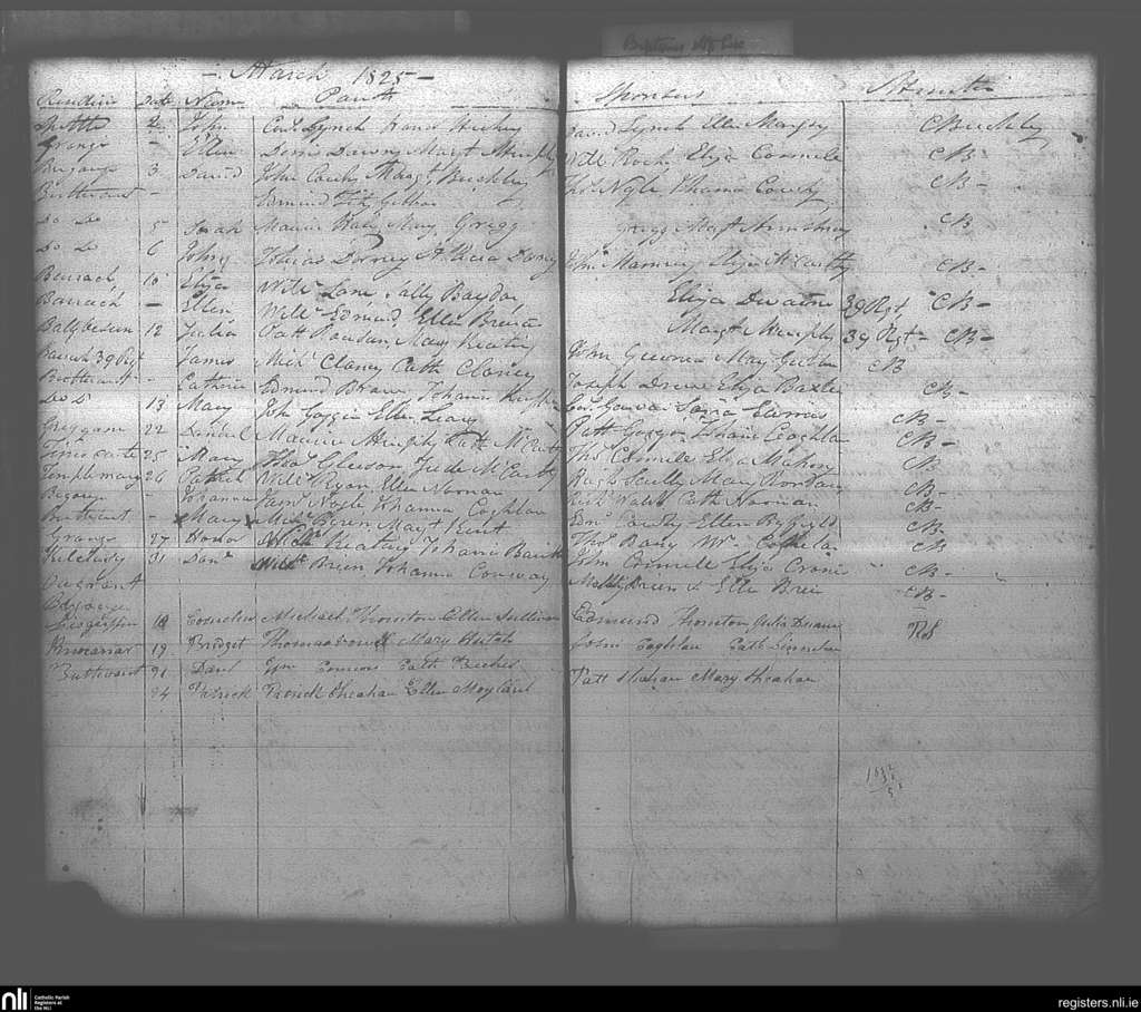 Buttevant; County of Cork; Diocese of Cloyne. Baptisms, Mar. 1825