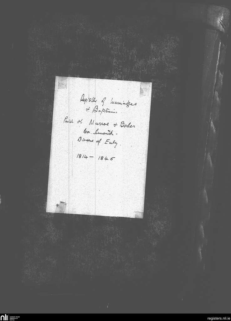 Murroe, Boher and Abington; County of Tipperary, Limerick; Diocese of Cashel and Emly. Baptisms, Marriages